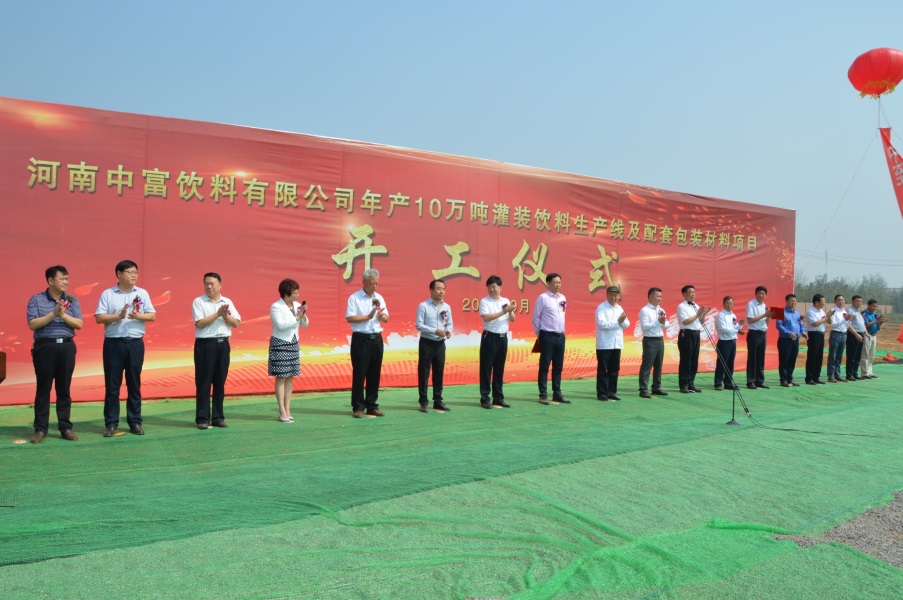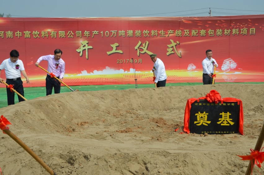 2017年9月18日,天空澄碧,纖云不染,河南中富隆重舉行了“年產10萬噸灌裝飲料線及配套包裝材料項目”(以下簡稱“新項目”)奠基儀式,珠海中富實業(yè)股份有限公司主要領導、新鄉(xiāng)市相關領導、衛(wèi)輝市相關領導應邀參加了此次奠基儀式,共同見證這一載入史冊的難忘時刻,奠基儀式由衛(wèi)輝市市長范士富先生主持,衛(wèi)輝市市委書記梁常運先生為奠基儀式致詞,珠海中富實業(yè)股份有限公司總經理張海濱先生代表中富集團作了重要發(fā)言。